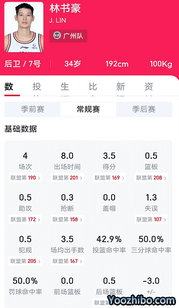 CBA常规赛至今,林书豪只出战了4场比赛,时间都很短,场均3.5分0.5篮板0.5助攻。本赛季林书豪因为登场时间少等原因,多项数据都是CBA百名开外,其中包括出场时间在联盟位居201位,得分更是只有169位,数据都很差,林书豪在广州男篮也越来越没有位置了。