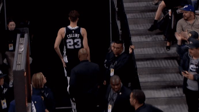 比赛暂停,威少坐回替补席接受治疗,进行止血治疗;对于这一次犯规,裁判多次回放后,最终吹罚科林斯二级恶意犯规,直接被驱逐离场,波波维奇不满判罚;威少则是吃到一个技术犯规,止血后脑袋上贴着创可贴继续执行罚球,之后威少返回更衣室接受进一步的治疗。