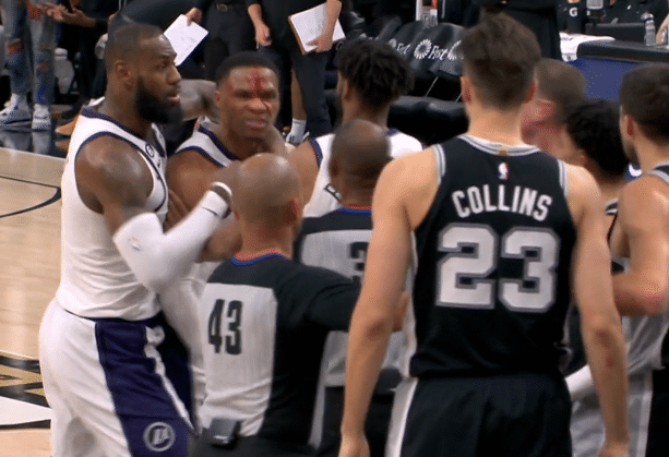 威少脑袋被打出血暴怒吃T 詹皇第一时间抱住威少:科林斯二级恶犯遭驱逐