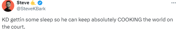 有球迷表示:KD睡一会儿,这样他就可以继续在球场上征服世界了;还有球迷表示杜兰特睡觉是为了更好地夺得金牌。