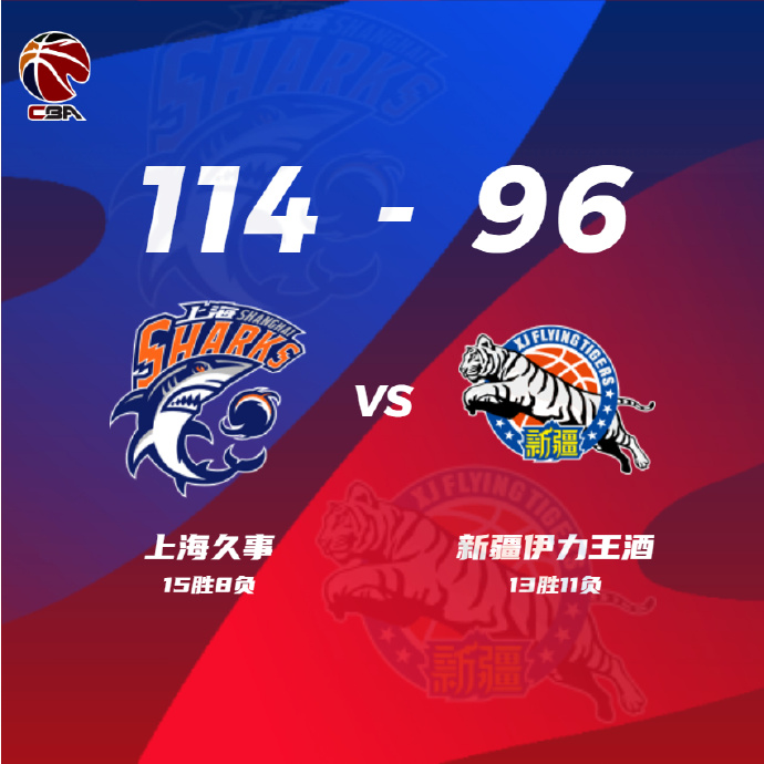 上海114-96终结新疆 王哲林24+17 闫鹏飞16+5 阿不都20+13