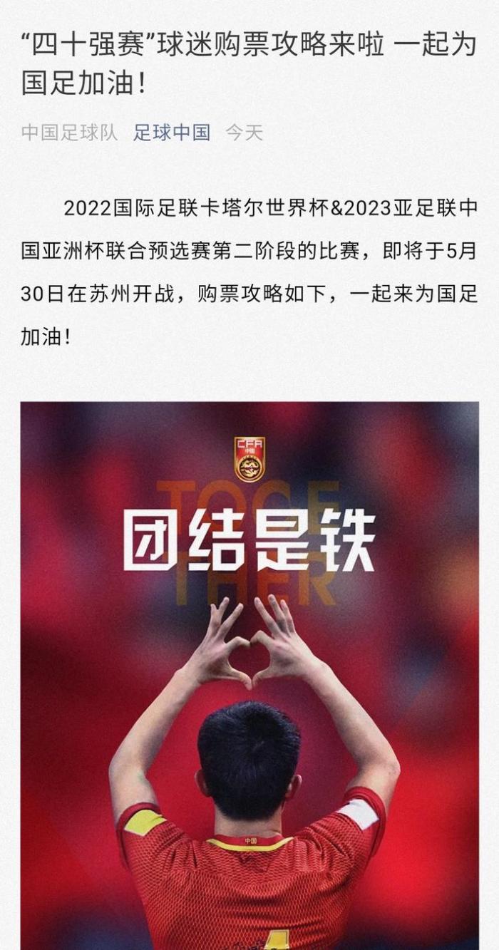 来源:24直播网05-13 16:4724直播网讯 北京时间5月13日,足协官方公布了国足40强赛剩余4场比赛开球时间和票务信息,四场比赛全部为19:30开球。