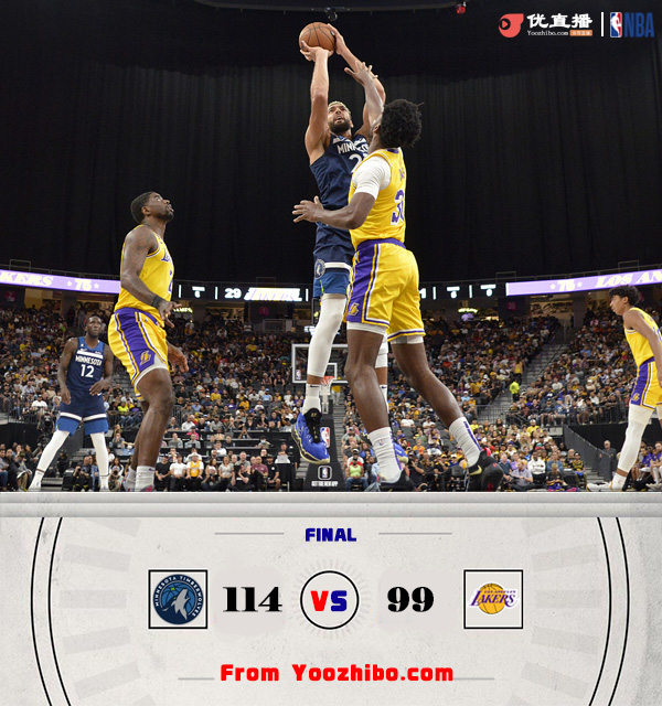 24直播网10月7日讯 湖人和森林狼今日迎来一场季前赛较量,上一场缺阵的戈贝尔今日首发出战,湖人方面则核心全部轮休。湖人虽然全替补但开局状态相当不错,开局8-0的攻势帮助他们一直保持着接近10分的领先,不过森林狼末段找回状态开始反击,他们首节末和次节初打出跨节14-2的攻势反超比分并取得9分领先进入下半场。下半场森林狼依旧稳压湖人一头,单节轰下36分帮助他们在第三节就拿到24分领先,巨大分差也让末节失去悬念,湖人靠着最后一波11-0的攻势稍稍挽回颜面。最终,森林狼轻取湖人取得季前赛2连胜,而湖人则遭遇3连败。