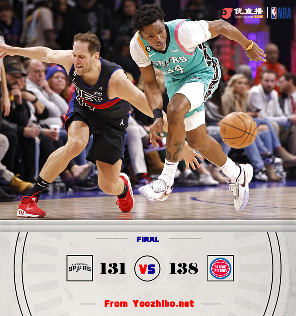 24直播网2月11日讯 活塞今日坐镇主场迎战马刺,两支球队本赛季状态都很糟糕,活塞目前3连败排在东部倒数第一,而马刺则吃到10连败排在西部倒数第二。首节对决马刺客场作战但状态更优,节中一波12-5的攻势帮助他们占据上风并在末段一度拉开至两位数领先;次节马刺连续打三分得手分差一度拉大至半场最大的16分,不过活塞在这之后迎来反弹,他们突然找回手感回敬一波25-9的攻势一举抹平比分,马刺靠着科林斯最后的进球才重新取得1分领先进入下半场。休息归来活塞和马刺短暂拉锯中再度占据上风,他们不断冲击篮下送出12-2的攻势一举拉开比分;随后的马刺虽然被动但迎来奇兵,格拉汉姆最后时刻连续飙进三分帮助球队扳平比分比赛也被拖入加时。双方激战了两个加时才分出胜负,活塞最后时刻抓住机会送出7-0的攻势为球队收下比赛。最终,活塞双加时力克马刺并送后者11连败。