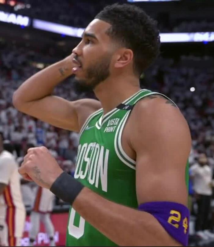 塔图姆佩戴科比24号护肘参加比赛,全场轰下26分10篮板6助攻,关键时刻挺身而出。