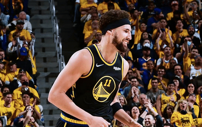 气势如虹!克莱半场5记三分+抖肩庆祝,库里遇惊魂,东契奇抱怨