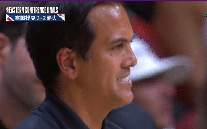 来到第四节初段,杰伦布朗外线三分飚中,巴特勒两个三不沾之后,终于抛投命中。但塔图姆三分再中,随后抛投得分。凯尔特人此时已经打出18-2的攻击波,热火请求暂停。但暂停并不能阻挡热火的溃败,回来之后杰伦布朗再中两记三分球!此时绿军已经打出了24-2攻势,比分来到83-60!比赛失去悬念。不少球迷提前退场抗议,主帅斯波无奈苦笑。