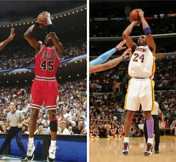 乔丹是后仰跳投的鼻祖,他让篮球技术有了更加优美的展现和升华,而科比一直都将乔丹当做自己的偶像,有人说科比的后仰跳投是模仿乔丹的,科比也承认不过他说他永远都是自己永远都是那个永不服输的黑曼巴,科比将后仰跳投开发出适合自己的身体条件的优化版本,他的后仰跳投幅度更大,难度更强。
