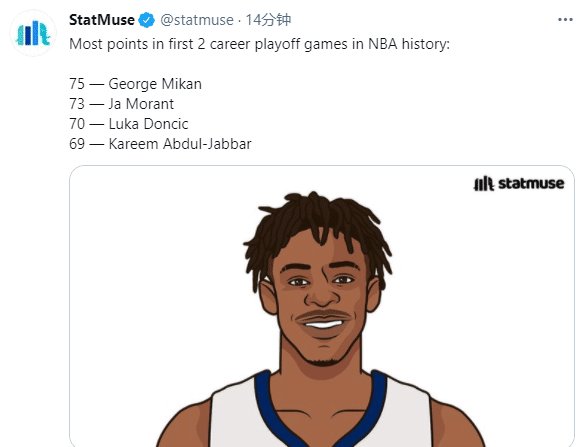 第一、莫兰特47分创造职业生涯得分新高,也是季后赛得分新高。第二、莫兰特47分创灰熊队史季后赛得分新高。