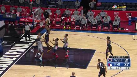 西蒙斯则用两节时间就拿到16分6板6助全面数据,全场砍下22分9板8助2断1帽,要是奇才太不给力,他早就拿到三双。