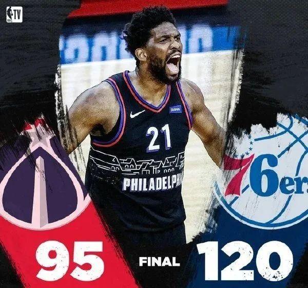 要知道奇才根本毫无还手之力,76人主力们一般都只打3节就打卡下班,夸张点只用半场就能分出胜负,比如说今天他们上半场就狂轰创队史纪录的71分。