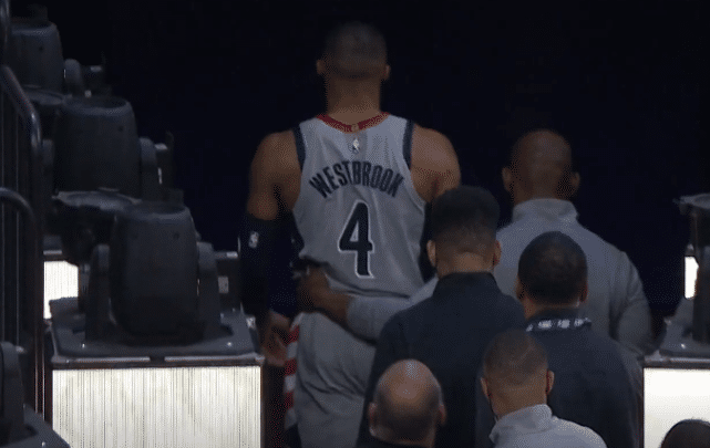 来源:24直播网05-27 11:2024直播网讯 北京时间5月27日,奇才客场95-120不敌费城,威少末节脚踝受伤退场,在离开球场前,有球迷把爆米花扔到威少头上,威少想要冲回球场和球迷理论,但被工作人员拦下。随后,这位球迷被驱逐出场。