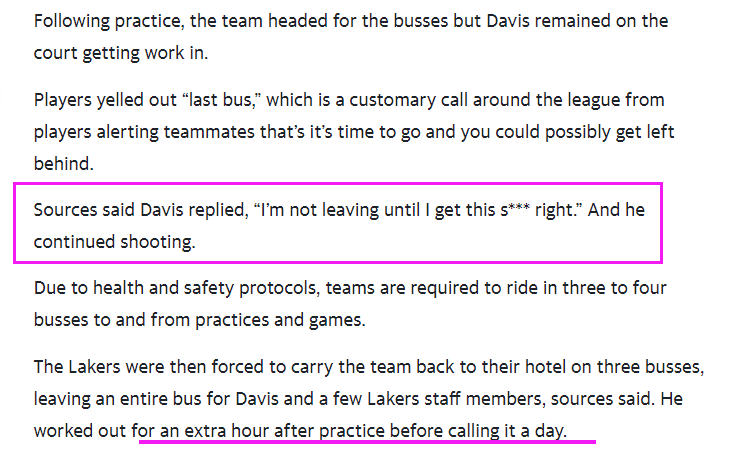 G2开打前一天,湖人训练结束后队友大喊浓眉,是时候回酒店了,但浓眉表示:搞不定这些投篮,我就不走了。