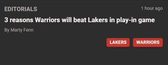 来源:24直播网05-18 18:0024直播网讯 北京时间5月18日,2020-21赛季的附加赛即将打响,湖人vs勇士无疑是这次附加赛的焦点之战。大部分人认为湖人将击败勇士晋级季后赛,但美媒clutchpoints认为这场对决的胜利者将是勇士,并列出了三大原因——