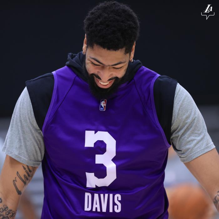时隔12天,施罗德终于重返球队,此前他因违反防疫协议被强制隔离,缺席了7场比赛;浓眉没有参加训练,但他反穿球衣十分有趣,把印有名字和号码的后面穿在前面,满脸笑容十分轻松。