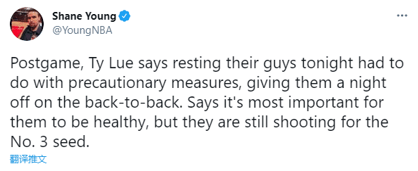 卢指导表示:轮休主力是为了预防伤病,让他们在背靠背比赛里休息一晚。健康对我们来说是最重要的,我们仍会尽力争取西部第三。