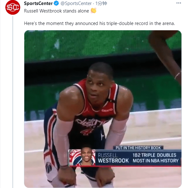 韦少182次三双超越大O引热议,奇才官方第一时间晒提前录制的视频,恭喜韦少正式加冕历史三双王,奇才CEO以及众高管都在视频中恭喜韦少,骑士球星乐福也恭喜自己的兄弟;奇才官推连续更新多条动态,写道:47年后,韦少做到了不可能发生的事,为什么不呢!