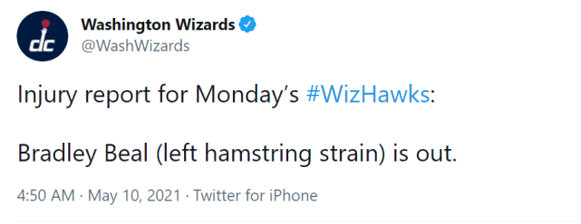 奇才官宣!比尔遭遇腿筋拉伤缺阵,韦少单核战老鹰再冲三双里程碑
