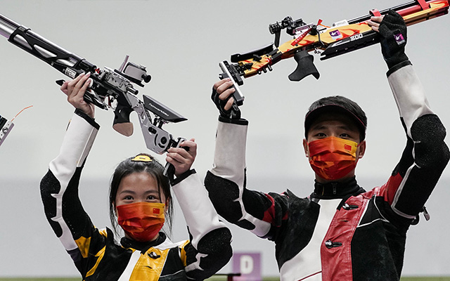 北京时间7月27日消息,东京奥运会射击比赛继续进行,中国队又夺一金。杨倩/杨皓然在气步枪混团决赛里以17比13战胜美国对手夺冠,这是中国代表团在本届奥运会的第9金。