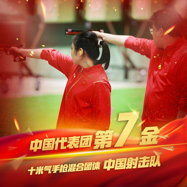 北京时间7月27日消息,东京奥运会射击比赛继续进行,中国队又拿到一枚金牌。在气手枪混合团体决赛里,姜冉馨/庞伟在一度4比8落后的情况下连续追分实现逆转,他们最后一枪绝杀对手夺金。这是中国代表团的第7金。