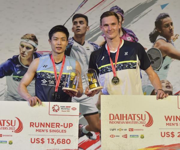 24直播网讯 北京时间2022羽毛球印尼大师赛男单决赛,在印度尼西亚首都雅加达举行的印尼羽毛球大师赛男单决赛中,丹麦选手安赛龙以2比0战胜中国台北选手周天成,夺得冠军。