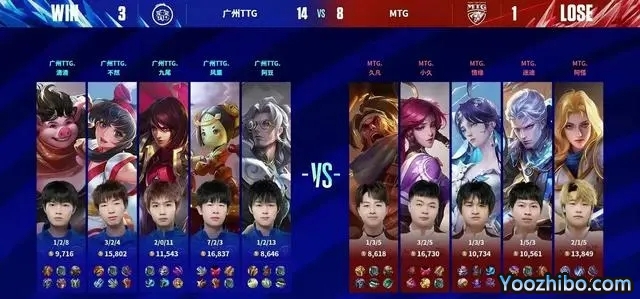 24直播网讯 北京时间03月16日,在KPL第二场比赛中,广州TTG以3-1的比分击败了MTG,拿下了第二轮常规赛A组的第二个积分。