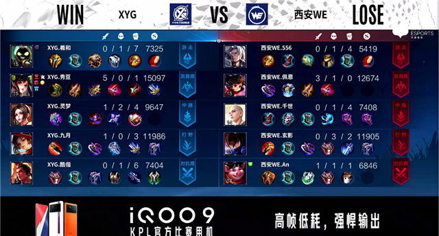 2分10秒,XYG猪八戒击杀阿古朵拿下一血。2分31秒,XYG拿下暴君。5分25秒,XYG破掉西安WE下一塔,中路团,XYG击杀东皇太一。5分58秒,西安WE破掉XYG上一塔。6分30秒,中路团,西安WE击杀猪八戒,随后控下暴君,XYG镜像控下主宰。7分22秒,西安WE破掉XYG下一塔。7分40秒,中路团,XYG击杀东皇太一。10分53秒,XYG控下暗影主宰,西安WE镜像控下暗影暴君,随后中路团,西安WE打出1换3。11分35秒,西安WE先后破掉XYG中一塔和中二塔。12分53秒,西安WE破掉XYG下二塔。14分04秒,西安WE破掉XYG上二塔。15分11秒,西安WE控下暗影主宰。16分钟,西安WE拿下暗影暴君。16分23秒,西安WE击杀猪八戒后破掉XYG中一塔,随后摧毁水晶追回一分。