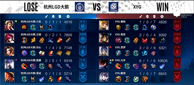 杭州LGD大鹅禁用: 鲁班大师、大乔、弈星、西施