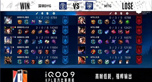 2分14秒,深圳DYG拿下暴君。2分27秒,MTG上路击杀夏侯惇拿下一血。3分23秒,MTG中路越塔击杀蒙犽。5分44秒,MTG破掉深圳DYG上一塔。6分08秒,MTG破掉深圳DYG下一塔,随后深圳DYG镜像破掉MTG上一塔后击杀马超。6分36秒,MTG拿下暴君。8分20秒,野区团,双方打出1换1,随后深圳DYG拿下主宰破掉MTG中一塔。9分25秒,深圳DYG破掉MTG下一塔。10分15秒,深圳DYG拿下暗影暴君。11分50秒,深圳DYG拿下暗影主宰。13分02秒,深圳DYG先后破掉MTG上二塔和中二塔。14分15秒,深圳DYG拿下暗影暴君。15分14秒,深圳DYG破掉MTG下二塔。15分44秒,深圳DYG拿下暗影主宰。16分07秒,深圳DYG中路击杀阿古朵后破掉MTG中路高地塔。16分46秒,深圳DYG破掉MTG上路高地塔。18分15秒,深圳DYG击杀马超。18分40秒,高地团,深圳DYG打出0换1,随后摧毁水晶先下一城。