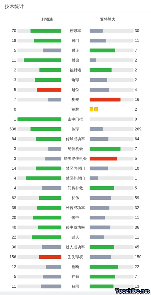 利物浦0-3惨负亚特兰大 努涅斯失单刀凯莱赫屡救险