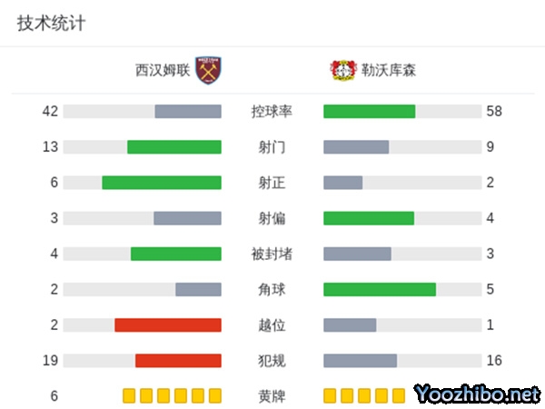 全场战罢,两回合总比分西汉姆联1-3勒沃库森。