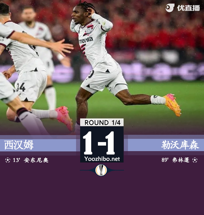 勒沃库森1-1西汉姆 杰里米-弗林蓬绝平终结