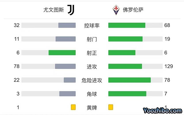 全场比赛结束,尤文图斯主场2-0战胜佛罗伦萨。