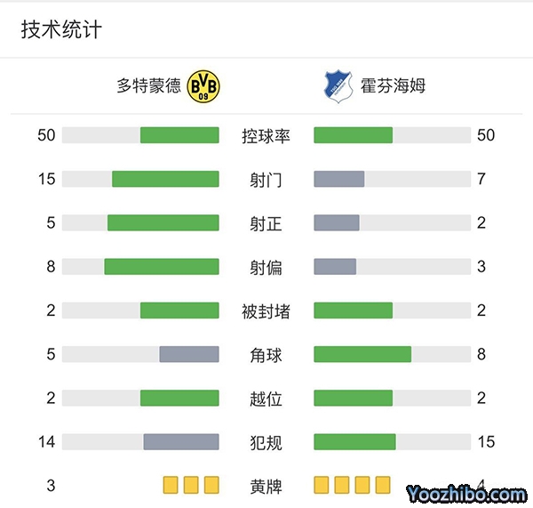 全场比赛结束,最终多特蒙德1-0击败霍芬海姆。