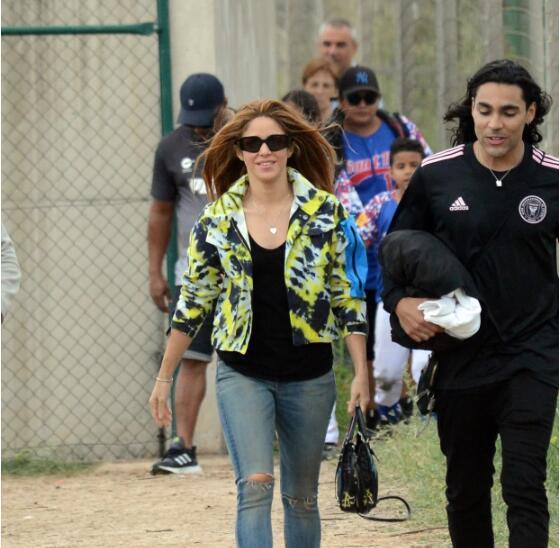 从曝光的照片可以看到,穿着帅气牛仔衣、戴着棒球帽的皮克,手插裤兜与母亲站在球场一侧,而一身便装戴着墨镜的夏姐,则与母亲还有好友,站在球场的另一侧。